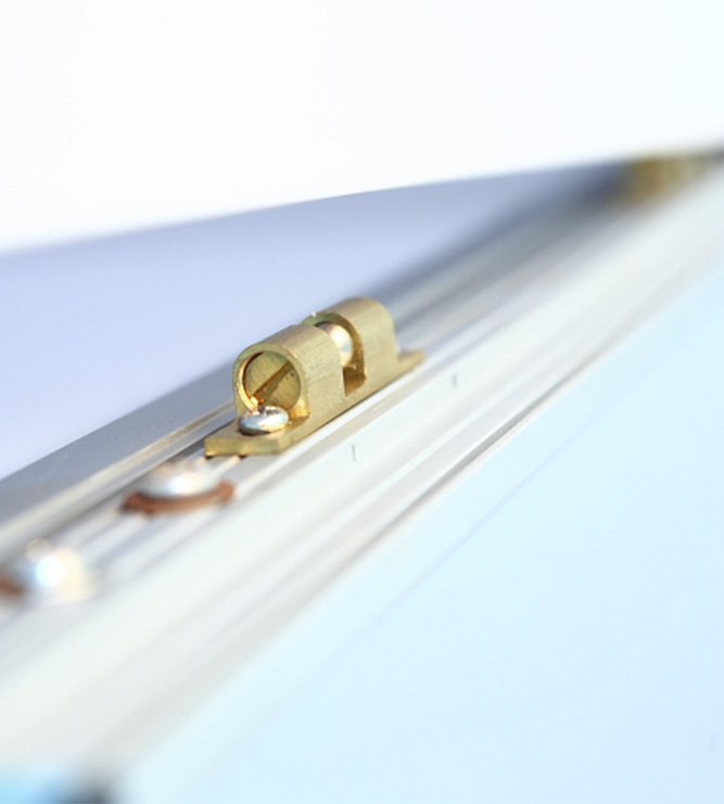 美式高强度电咏铝合金型材与PVC合金制作面板与箱体,结构牢固,外型硬朗大气。箱体与面框采用自动锁合暗式开关,开启闭合简便,利于日常维护及更换灯管。